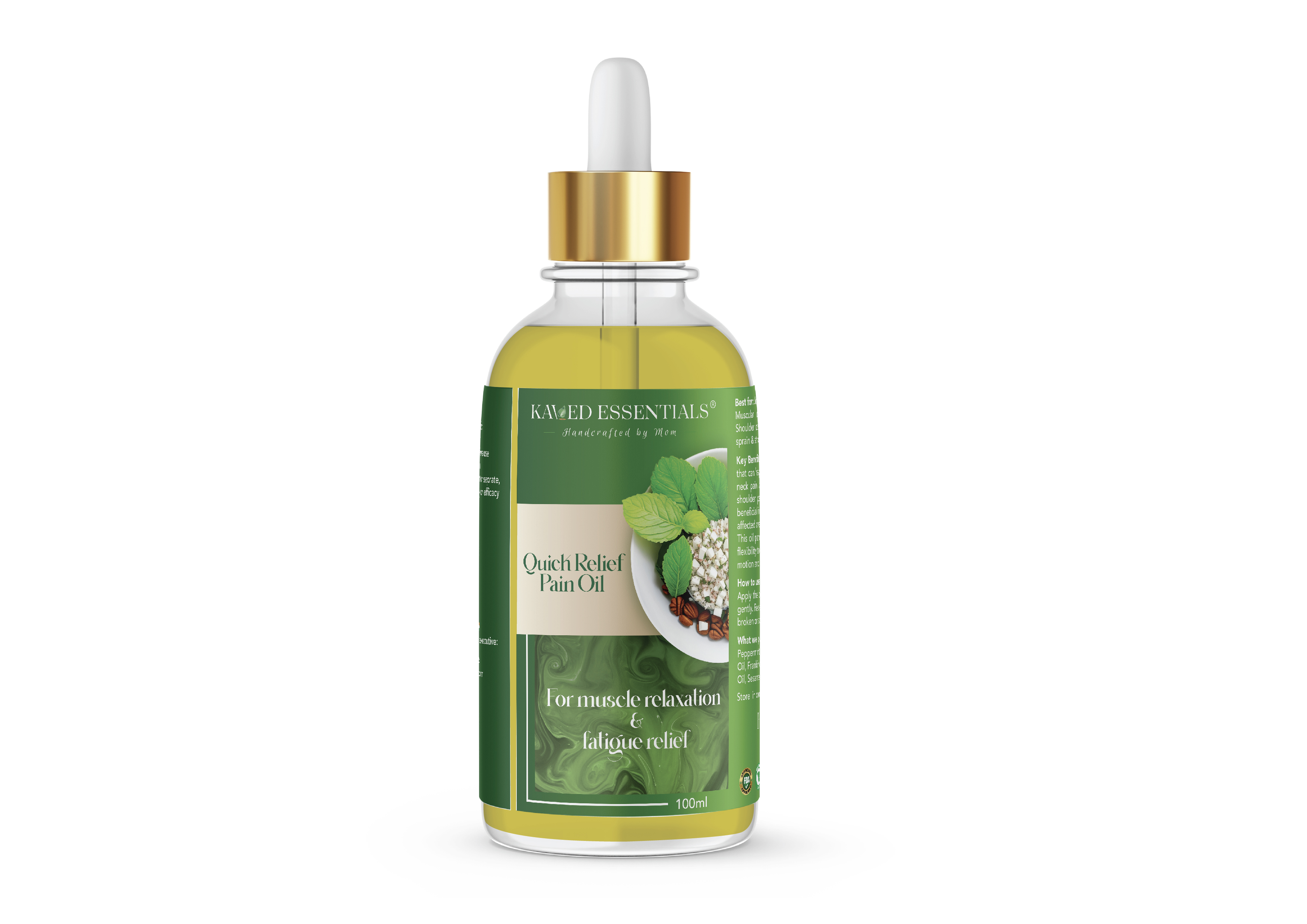 KEY BENIFITS:- A NATURAL BLEND OF SEVERAL OILS THAT CAN HELP RELIEVE BACK PAIN,JOINT PAIN &NECK PAIN.IT ALSO HELPS WITH SORE MUSCLES, SHOULDER PAIN OR STIFF MUSCLES.PAIN OIL IS BENIFIT IN INCREASING THE BLOOD FLOW OF THE AFFECTED AREA & REDUCE STIFFNESS IN MUSCLES. THE OIL PENETRATES DEEP & HELP TO PROVIDE FLEXIBILITY TO THE JOINTS & IMPROVE THE RANGR OF MOTION & OTHER ALIMENTS OF JOINTS.