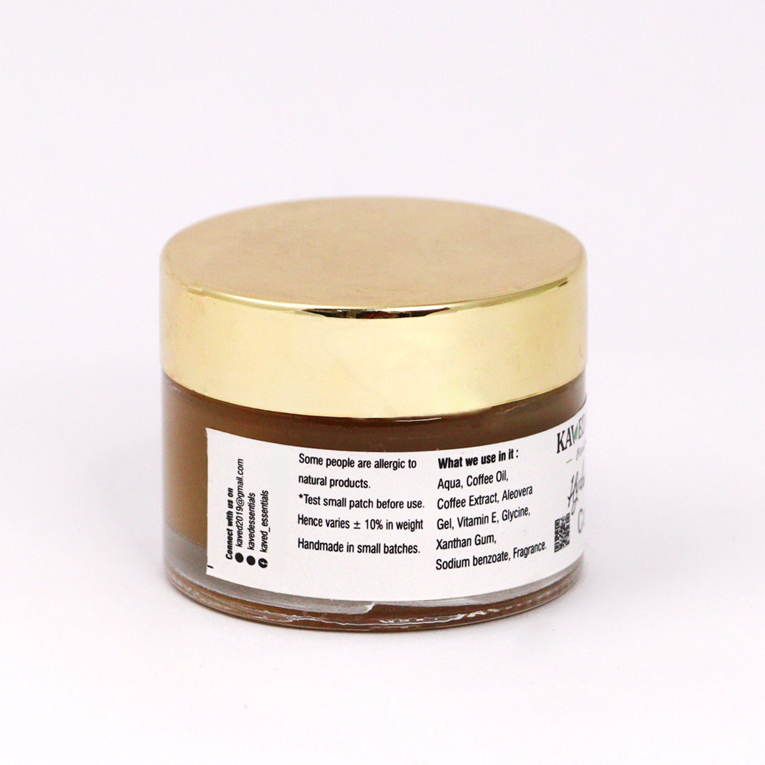 AQUA,COFFEE OIL,COFFEE EXACT,ALEOVERA GEL, ,GLYCERIN, VITAMIN –E,XANTHAN GUM,SODIUM BENZOATE, FRAGRANCE.
